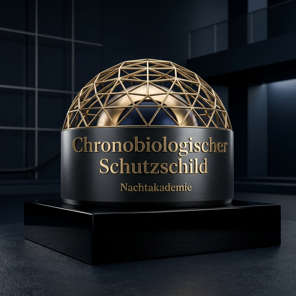 Das Chronobiologische Schutzschild unterscheidet die Nachtakademie fundamental von gewöhnlicher Nachtarbeit. Es umfasst eine Chronotyp-Analyse vor Programmbeginn, steuerbares Lichtmanagement, methodische Nutzung des Toten Punktes, ein Wind-Down-Ritual und Selbstmonitoring mit klaren Abbruchkriterien. Der Gesundheitsschutz ist keine Beigabe — er ist die Grundlage. Extreme Frühtypen (Lerchen) werden von der Teilnahme ausgeschlossen.